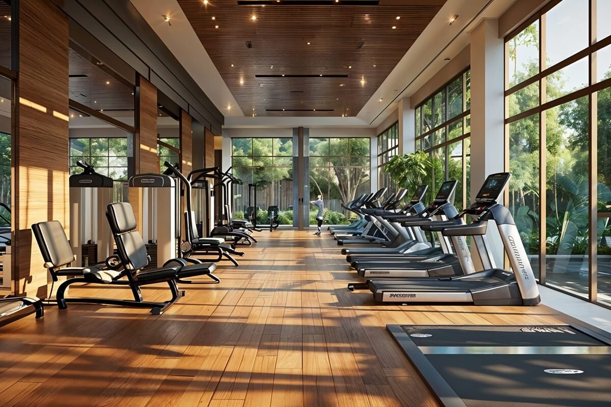 A fully equipped fitness center designed to support a healthy, active lifestyle.
