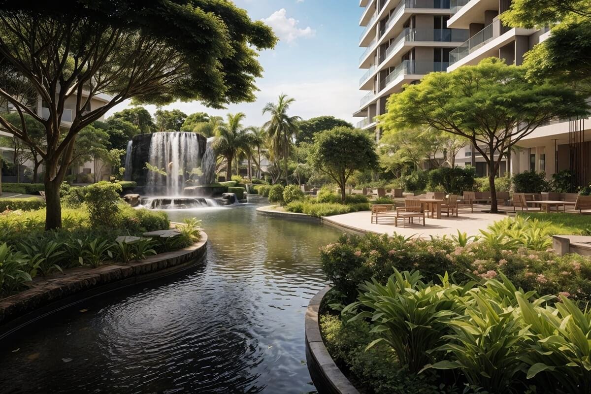 Beautifully landscaped green spaces that provide peaceful setting for relaxation.